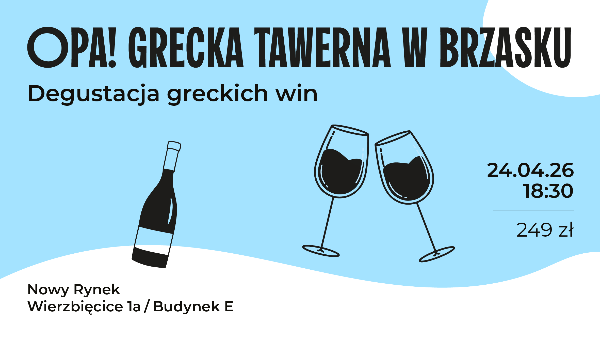 Zapraszamy na wyjątkowy wieczór, podczas którego przeniesiemy się do klimatycznej greckiej tawerny, pełnej aromatów, prostych składników i radosnej atmosfery. Opa! to kolacja degustacyjna inspirowana tradycyjną kuchnią Grecji, połączona ze starannie dobranymi winami z greckich winnic.